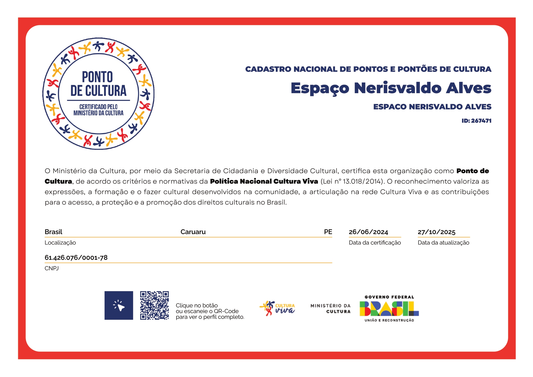 O ator Nerisvaldo Alves – que também é produtor cultural, diretor e poeta – celebra o recebimento do Certificado do