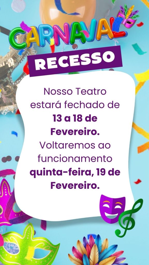 O Espaço Nerisvaldo Alves estará em recesso de carnaval do dia 13 ao dia 18 de fevereiro de 2026 retornando suas atividades no dia 19 de fevereiro, desejamos a todos e todas um ótimo carnaval!!!